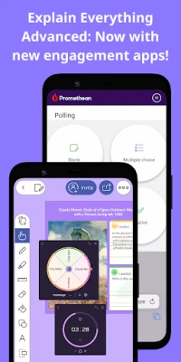 Explain Everything Drive क्लाउड के माध्यम से अपनी सभी सामग्रियों को एक ही स्थान पर डिजिटाइज़ और संग्रहीत करें, ताकि वे किसी भी डिवाइस से, कहीं भी उपलब्ध रहें। छात्रों या टीम के सदस्यों के साथ वास्तविक समय में सहयोग करें, समूह असाइनमेंट होस्ट करें और विचारों को आसानी से साझा करें। Promethean के विशेष Polling, Timer और Spinner ऐप्स के साथ अपनी शिक्षण शैली को उन्नत करें – तुरंत प्रश्न पूछें, समय का प्रबंधन करें और यादृच्छिक चयन के लिए स्पिनर का उपयोग करें, जिससे छात्र सहभागिता और गहरा ध्यान सुनिश्चित हो। Explain Everything आपको Zoom, Microsoft Teams और SharePlay जैसे लोकप्रिय कॉन्फ़्रेंसिंग टूल के माध्यम से अपनी सामग्री को निर्बाध रूप से प्रसारित करने की स्वतंत्रता देता है।
