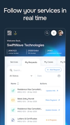 पंजीकृत व्यावसायिक उपयोगकर्ताओं के लिए, FZA Mobile App कंपनी प्रबंधन में एक अमूल्य सहयोगी साबित होता है। आप अपनी कंपनी के व्यापक विवरणों तक पहुँच सकते हैं, जिसमें लाइसेंस की जानकारी, परिसंपत्ति प्रबंधन, लीज समझौते और अन्य महत्वपूर्ण व्यावसायिक डेटा शामिल हैं। कर्मचारियों के रिकॉर्ड, वीजा की स्थिति और अन्य प्रासंगिक जानकारी की समीक्षा के लिए कर्मचारी प्रबंधन उपकरण भी उपलब्ध हैं। विभिन्न सेवा अनुरोध, जैसे वाणिज्यिक परमिट के लिए आवेदन करना या अपनी व्यावसायिक जानकारी में संशोधन करना, सीधे ऐप के माध्यम से प्रस्तुत और मॉनिटर किए जा सकते हैं। समय पर सूचनाओं के साथ अपनी कंपनी की स्थिति, सेवा प्रस्तुतियों और नवीनीकरण अनुस्मारकों के बारे में सूचित रहें। FZA द्वारा जारी किए गए परमिट की समीक्षा और प्रबंधन करें और अपने ठेकेदारों और सेवा प्रदाताओं के अद्यतन रिकॉर्ड बनाए रखें। FZA Mobile App वास्तव में एक व्यापक और निर्बाध सेवा अनुभव के लिए आपका प्रवेश द्वार है।
