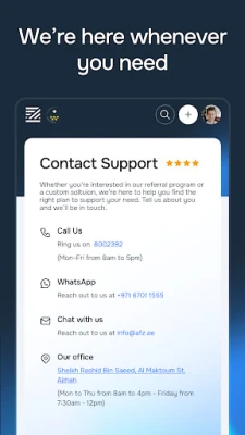Free Zones Authority of Ajman (FZA) के साथ सहयोग करना इतना आसान कभी नहीं था। FZA Mobile App के माध्यम से, आम उपयोगकर्ता सीधे पूछताछ सबमिट कर सकते हैं या सहायता के लिए मामले दर्ज कर सकते हैं। इसके अतिरिक्त, ऐप 24/7 लाइव चैट समर्थन प्रदान करता है, जिससे आप हमारी सेवा एजेंटों से वास्तविक समय में सहायता प्राप्त कर सकते हैं, चाहे आप पंजीकृत व्यावसायिक उपयोगकर्ता हों या आम जनता का हिस्सा। आप लॉगिन क्रेडेंशियल की आवश्यकता के बिना परमिट और तृतीय-पक्ष पंजीकरण जैसी विभिन्न सार्वजनिक सेवाओं के लिए भी आवेदन कर सकते हैं। यह ऐप सुरक्षा और उपयोग में आसानी पर विशेष ध्यान देकर डिज़ाइन किया गया है, यह सुनिश्चित करते हुए कि प्रत्येक उपयोगकर्ता को एक सहज और सुरक्षित अनुभव मिले।