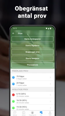 Jägarexamen आपको "Jaktresan" नामक एक अद्वितीय शैक्षिक खेल के माध्यम से पूरी सिद्धांत शिक्षा को सीखने का अवसर प्रदान करता है। यह गेम छोटे सिद्धांत पाठों, कला प्रस्तुतियों, वीडियो और विभिन्न प्रकार के परीक्षणों के साथ आपके ज्ञान का निर्माण करता है। जैसे-जैसे आप खेलते हैं, आप सितारे एकत्र करते हैं और पदक अनलॉक करते हैं, और खेल के अंत तक, आप वास्तविक सिद्धांत परीक्षा पास करने के लिए आवश्यक सभी ज्ञान से लैस होंगे। इसके अलावा, ऐप छह विभिन्न प्रकार के अभ्यास परीक्षणों से भरा है, जिनमें आपकी समझ के स्तर के अनुसार अनुकूलित स्मार्ट अभ्यास, वन्यजीव परीक्षण, विषय-आधारित परीक्षण, केवल पक्षी-चित्रों वाले परीक्षण और यथार्थवादी सिद्धांत परीक्षण शामिल हैं। 1,400 से अधिक प्रामाणिक प्रश्नों के विशाल डेटाबेस के साथ, प्रत्येक प्रश्न की स्पष्ट व्याख्या आपको जटिल अवधारणाओं को भी आसानी से समझने में मदद करती है।