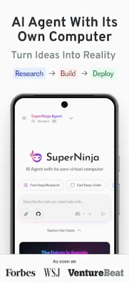 'SuperNinja Agent' के साथ, संभावनाएँ अनंत हैं। यह सिर्फ एक AI नहीं, बल्कि आपका व्यक्तिगत डिजिटल सहायक है जो अपने कंप्यूटर पर स्वायत्त रूप से कार्य करता है। क्या आप एक पूरी वेबसाइट बनाना चाहते हैं? बस अपनी दृष्टि का वर्णन करें, और SuperNinja कोड लिखेगा, उसे तैनात करेगा और पूर्ण कार्यक्षमता के साथ आपकी साइट को तैयार कर देगा। यह व्यावसायिक उपकरण जैसे डैशबोर्ड, स्प्रेडशीट, प्रस्तुतियाँ और दस्तावेज़ भी बना सकता है। गहन शोध की आवश्यकता है? SuperNinja उद्धरणों और गहन विश्लेषण के साथ व्यापक रिपोर्ट प्रदान करता है। एकल स्क्रिप्ट से लेकर पूर्ण अनुप्रयोगों तक, यह उत्पादन-तैयार कोड उत्पन्न करने में भी माहिर है, जिससे डेवलपर्स का काम असाधारण रूप से आसान हो जाता है।