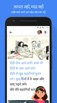 Read Along by Google प्राथमिक बच्चों को अंग्रेज़ी, हिन्दी और अन्य भाषाएँ पढ़ना सिखाता है। Google Assistant तकनीक से बनी "दिया" उनकी बोली सुनकर तुरंत मदद करती है और ऑफ़लाइन भी काम करती है। यह मुफ़्त और विज्ञापन-मुक्त ऐप है।